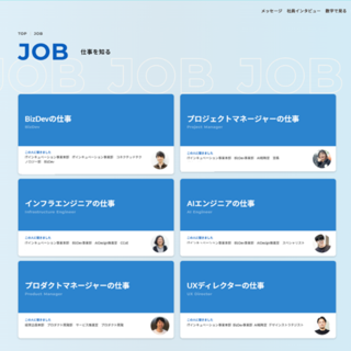 新コンテンツでは、主要職種のミッションや役割、求められるスキル、キャリアパスを紹介しています。