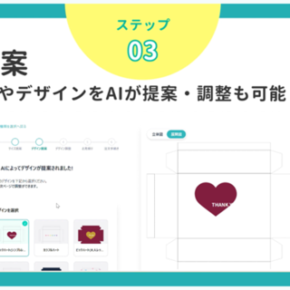例えば「コスメ商品を入れるパッケージ」といった要望が入力されると、AIがデザインデータベースを参照し、「上品」「可愛い」「高級感」などの特徴を持つ候補を抽出して提示します。